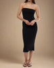 This elegant dress is a stunning choice for those who appreciate a blend of classic style with a hint of modernity. The rich, warm hue is a standout choice, offering a unique alternative to the traditional little black dress. Its strapless design highlights the collarbone and shoulders, making it an excellent canvas for statement jewelry or to be enjoyed in its simple elegance.