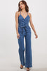 Channel your inner fashionista with the effortlessly chic and versatile Washed Black Halter Neck Flare Denim Jumpsuit. This timeless denim jumpsuit boasts a sophisticated collared halter neckline, adding a touch of elegance to the overall design. The structured silhouette flatters the figure, while the functional pockets offer a touch of practicality.