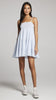The Camden Midi Dress is a summer dream come true, ready to add a touch of elegance to your wardrobe. This strapless beauty features a baby blue and white patterned fabric that flows in a flattering midi silhouette. The sweetheart neckline adds a touch of romance, while the charming bow detail at the bust cinches you in for a beautifully defined silhouette.