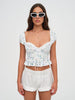 The Montmartre Sweater Top Black is a cropped sweater top featuring ruching and rosette detail that is sure to be a show stopper at any holiday event you have coming up this season. The sweater top is perfect for transitional weather, as it can be worn on its own or layered under a jacket or coat. It is also a great choice for dressing up or down, as it can be worn with jeans and boots or with a mini skirt and some heels!