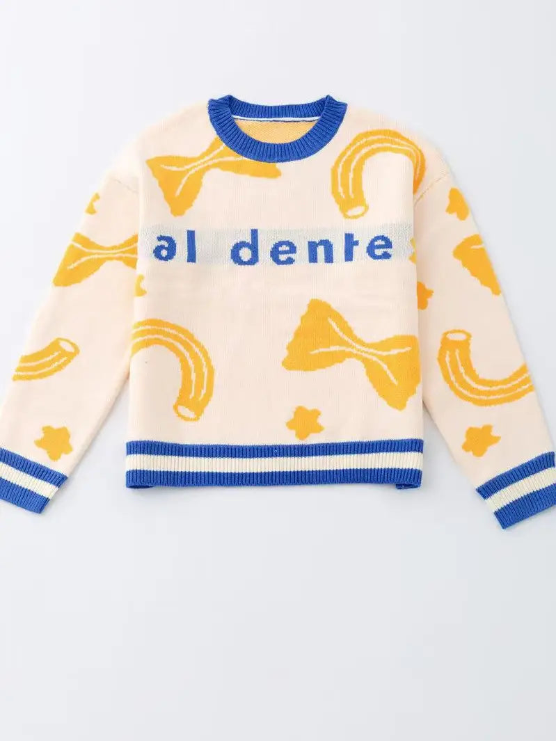 Get ready to add some fun to your wardrobe with the Al Dente Pasta Knit Sweater! Featuring a playful graphic and a nod to Italy, this cozy sweater is sure to make a statement. Perfect for any pasta lover, this sweater is a must-have for staying both stylish and comfortable. Mangia!