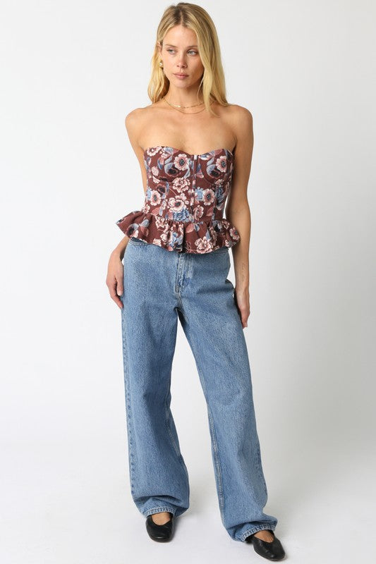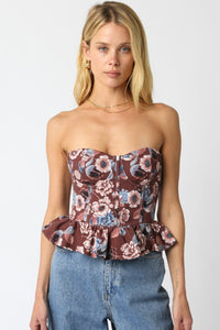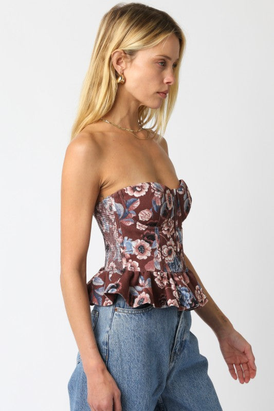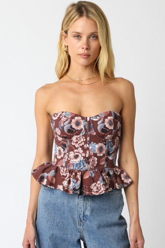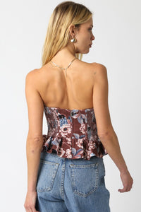 Retro-inspired chocolate rose corset featuring a convenient back zipper and flirty micro peplum that cleverly slims your waist. This Allie Floral Top hugs in all the right places without the dreaded underarm pinch! Snug fit across the lower chest keeps everything secure while you dance the night away. Just add your go-to jeans for an instant night-out vibe that looks like you tried (but totally didn't).