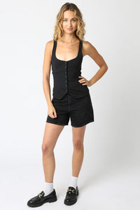 Stretch your style horizons with our Paloma Button Top! This playful twist on menswear inspiration features a longer silhouette and adorable mini buttons for extra charm. Bouncy, stretchy fabric means this tank moves with you, making the day-to-night transition as fun as it is comfortable!